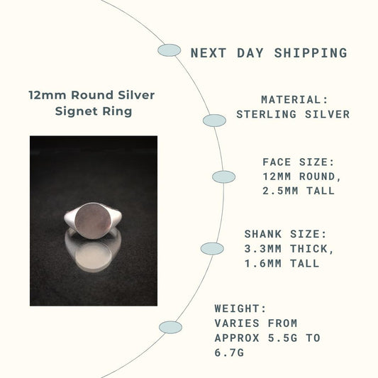 12mm Round Sterling Silver Signet Ring for Jewellery Crafting, Engraving, Gem Setting, Men's or Women's